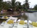 accueil chaleureux et restauration sur place face à la lagune